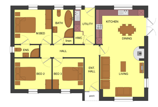 The Cottage is a 3 bed, 1081sqft / 100m2 family home aimed towards those requiring a bit more space and bedroom accommodation. A spacious, open-plan kitchen/dining/living space is provided with glass doors to the garden and a wood burning stove as a central feature. Ideally suited family home with 2 large double bedrooms and master bedroom complete with an ensuite and also a large, family sized bathroom. Choice of floorplans available eg: with utility room, attic conversion