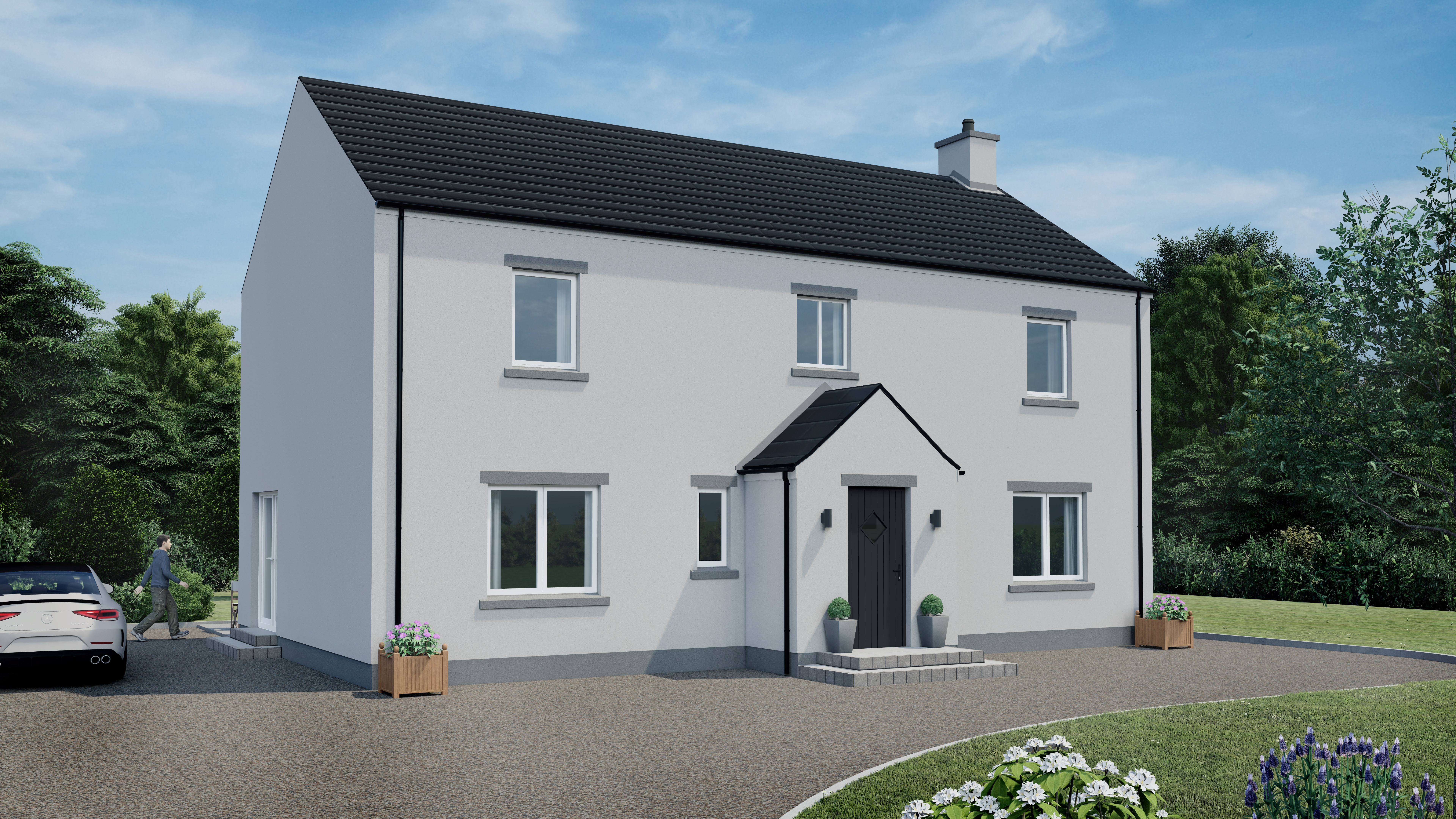 The Lodge is the top of the ECO-Range, Luxury, 4-Bed, family home. This 1685sqft / 157m2, 2-Storey dwelling has everything a spacious family home requires. It boasts an open-plan kitchen-dining opening into the living space. The separate front lounge as the main reception area. The first floor with gallery landing overlooking the entrance hall, has 3 large double bedrooms with family sized bathroom. The master bedroom enjoys its own ensuite and ample space for fitted wardrobes. A modern, spacious home for everyone, at an affordable cost and with a hint of luxury.